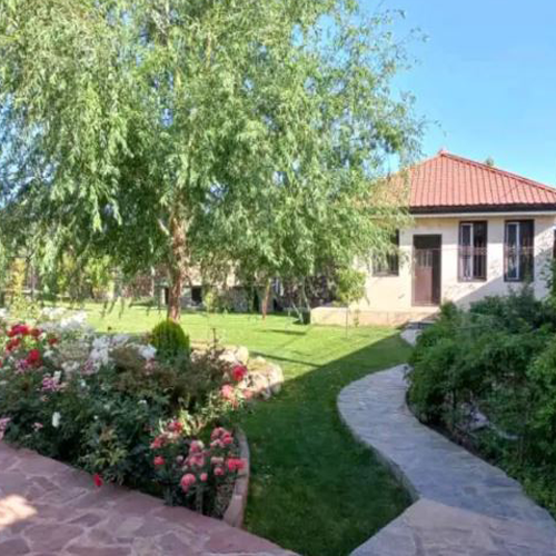 فروش باغ گرمابسرد با متراژکلی ۹۰۰ متر وبنای حقیقی ۸۵ متر شیروانی شده دارای سندملکی معتبر، سهمیه آب، استخر، سونا، جکوزی و باغچه بزرگ